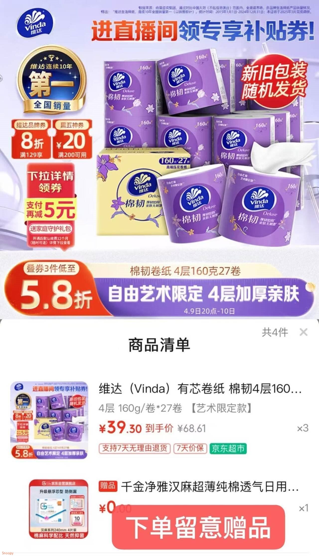 *再贈千金净雅日用卫生巾4片