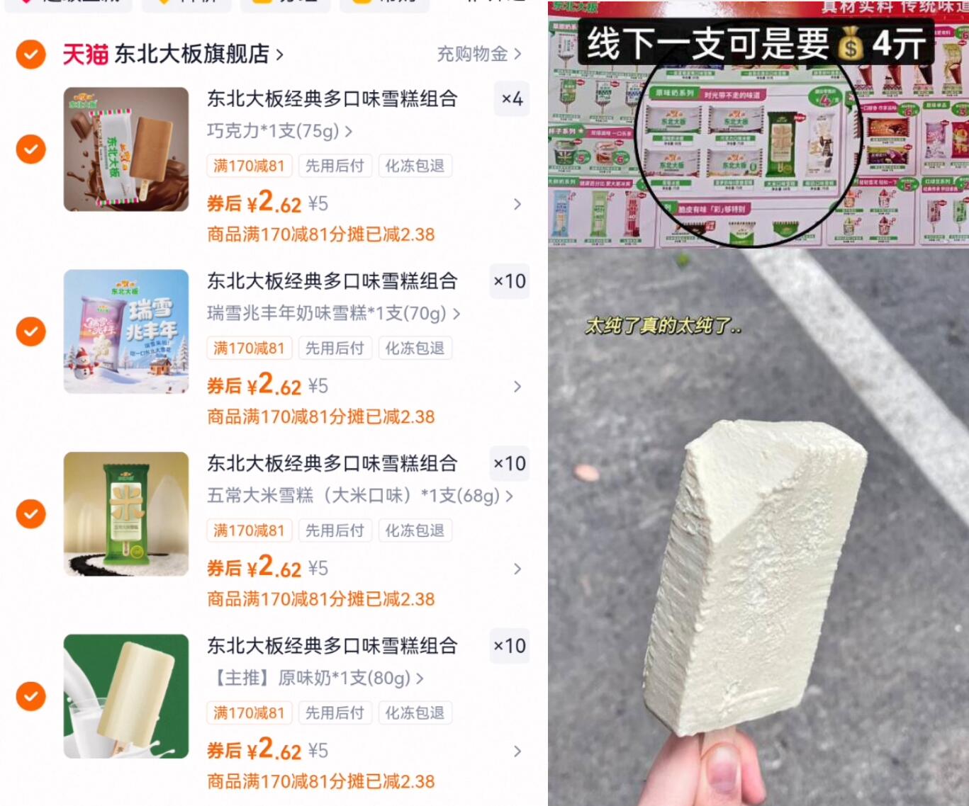 东北大板多味冰淇淋合集 任拍34件 89元发报员Z2026年04月14日 23:500举报 0点2.6元/支好圿 任拍34件89元【东北大板】多味冰淇淋合集https://m.tb.cn/h.ioNowYI纯纯生牛乳,雪糕中的天花板线下4元/支!嘴馋的宝子屯点复制文案