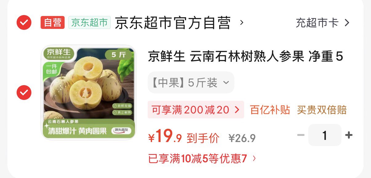 云南石林树熟人参果净重5斤 19.9元