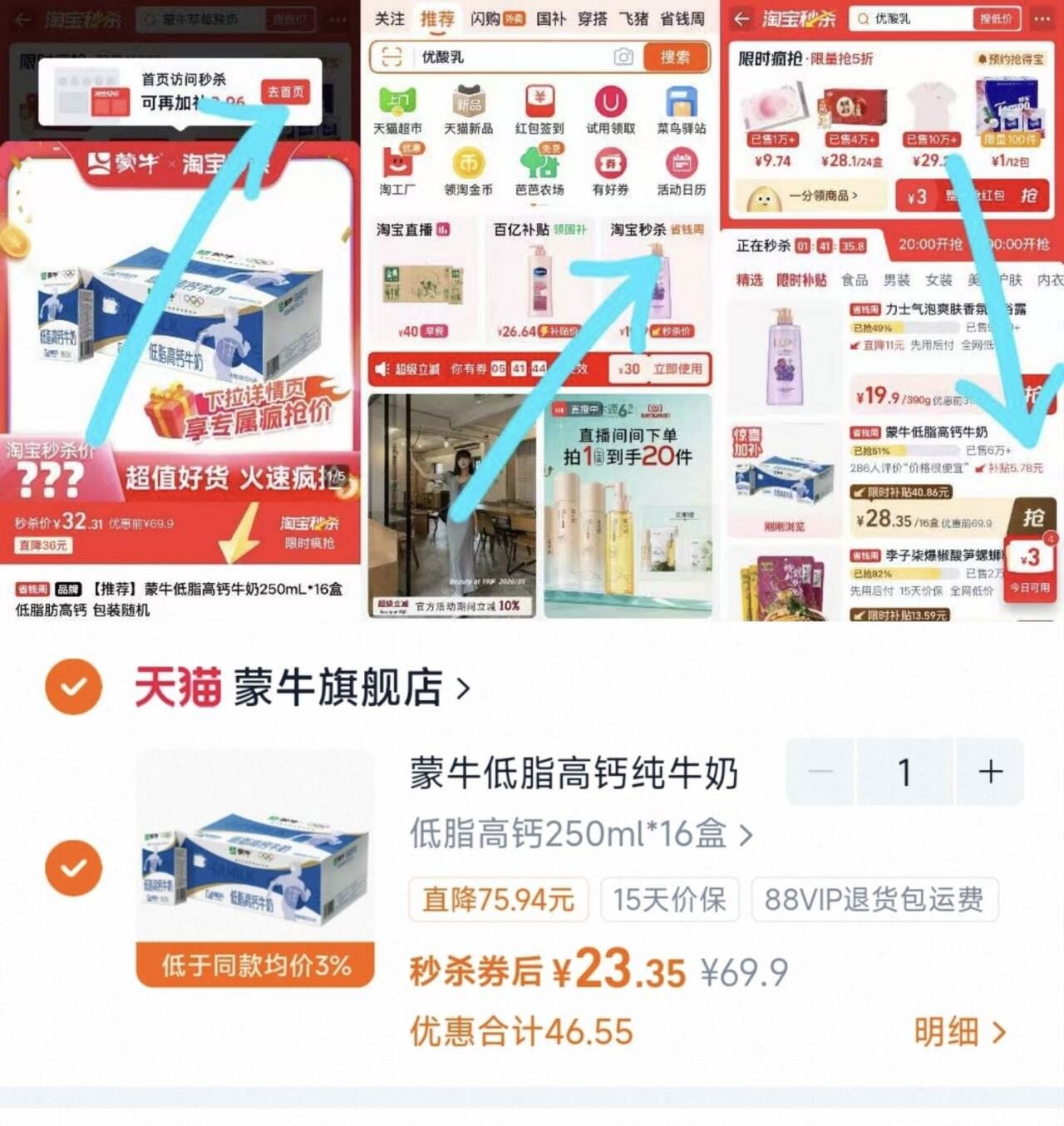 蒙牛低脂牛奶250mL*16盒 23.3元发报员Z2026年04月22日 00:400举报 速 淘寳搜:省钱卡 领5劵首页进秒杀 淘金币=23.3元-蒙牛低脂牛奶250mL*16盒https://m.tb.cn/h.isAahk9百分百生牛乳 美味又营养低脂无负担 趁活动抓紧囤上复制文案