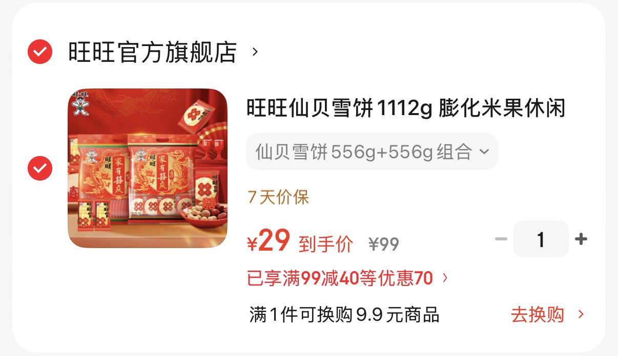 29元 旺旺仙贝雪饼556g 556g