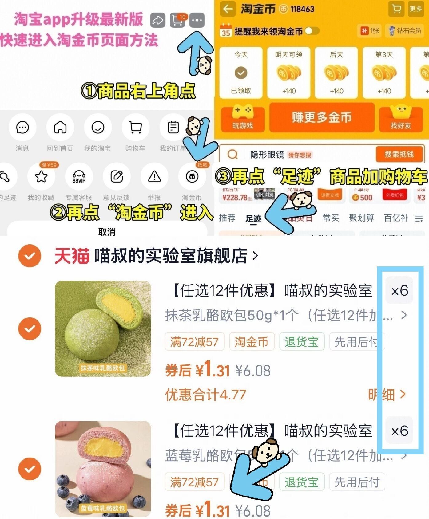 ①如图点右上角3个点选淘金币