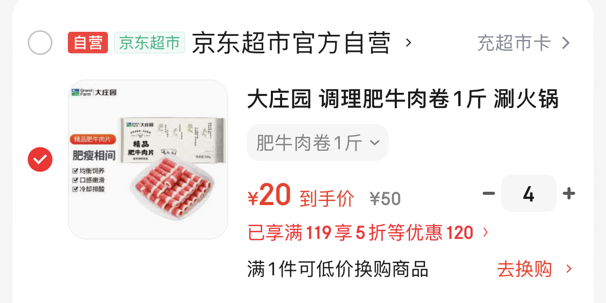 大庄园国产精品肥牛肉卷1斤/袋 4件80元发报员Z2026年04月24日 01:000举报 领200-20卷-https://u.jd.com/fDKCTAE【自营】大庄园 国产精品肥牛肉卷 1斤/袋-https://u.jd.com/faM74cO 4件80元,折20/斤复制文案