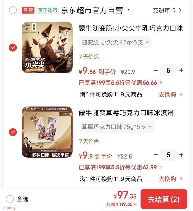 ——自营蒙牛冰淇淋shen价 ——