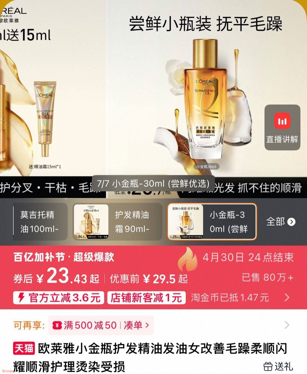 欧莱雅护发精油30ml 23.4元发报员Z2026年04月24日 14:360举报 23.4元!下拉叠淘金币【欧莱雅】护发精油30ml洗完头来2泵 受损发质必备炸毛星人真的很难不心动啊-https://s.click.taobao.com/TDuBzCm复制文案