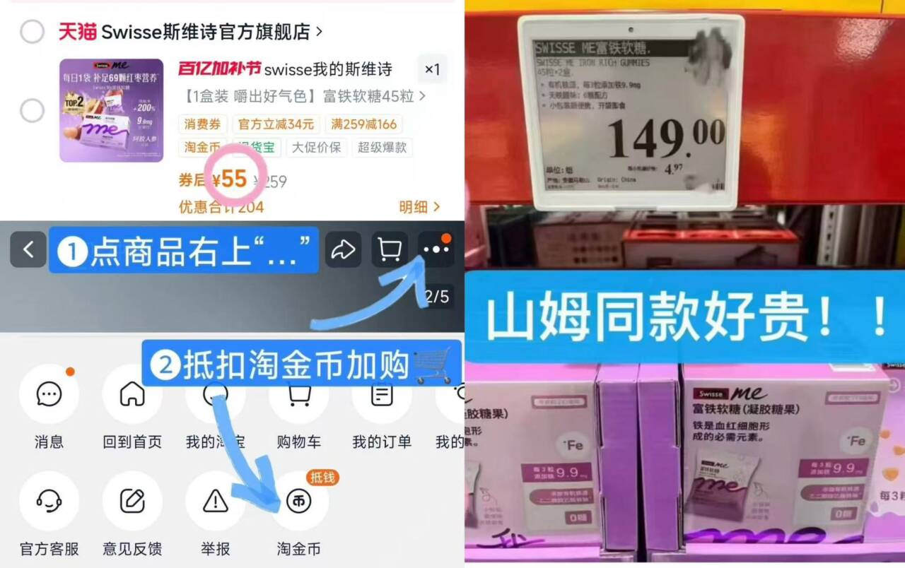 斯维诗富铁软糖45粒 55元发报员Z2026年04月24日 14:520举报 55元 斯维诗富铁软糖 看图右上角叠惍币 下https://m.tb.cn/h.iHhfN7v-45粒折1元/粒 山姆在售149补铁王者!气.血不足冲ta 复制文案