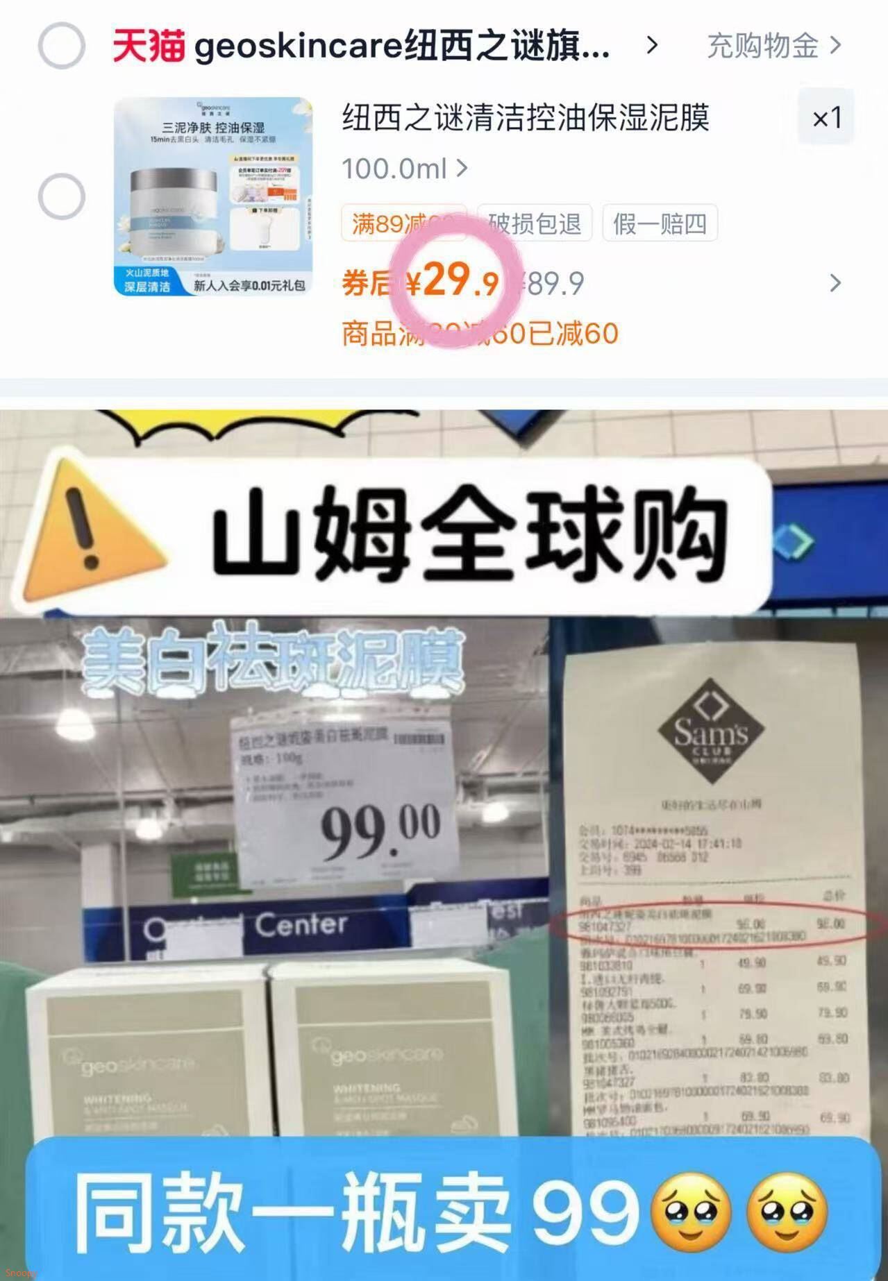 纽西之谜冰河泥膜100g 29.9元发报员Z2026年04月25日 15:000举报 29.9元纽西之谜冰河泥膜!!太值了 山姆卖到99一瓶 100g大罐!妥妥某颜氏平替https://m.tb.cn/h.itWGUSD复制文案