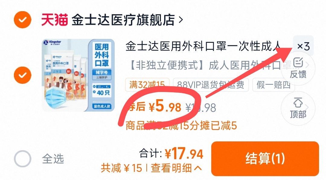 金仕达一次性医用外科口罩120只 3件 17.9元发报员Z2026年04月25日 20:120举报 3件17.9元金仕达旗舰店一次性医用外科口罩120只 流感季 口罩必囤的嗷 出门少不了的 医用大牌质量杂牌不了的 线下很贵-https://m.tb.cn/h.itSQBO1复制文案