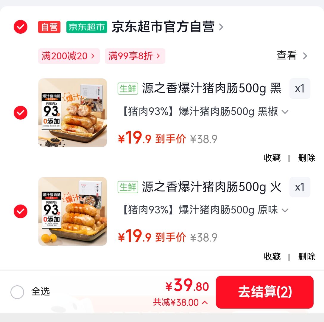 原味/黑椒味猪肉肠