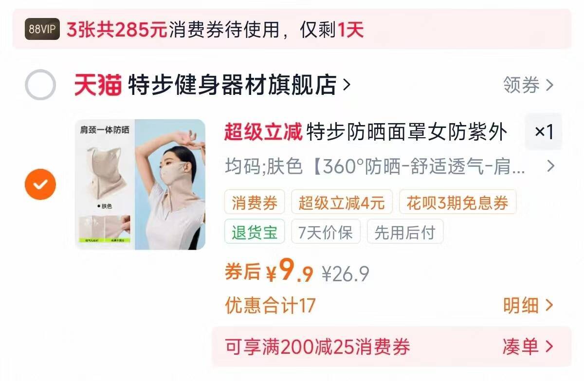 特步防晒面罩一体 9.9元发报员Z2026年04月26日 08:330举报 速 特步防晒面罩一体前3选项任选9.9元一个门店在售同歀要59.9元!https://m.tb.cn/h.iumyoll复制文案
