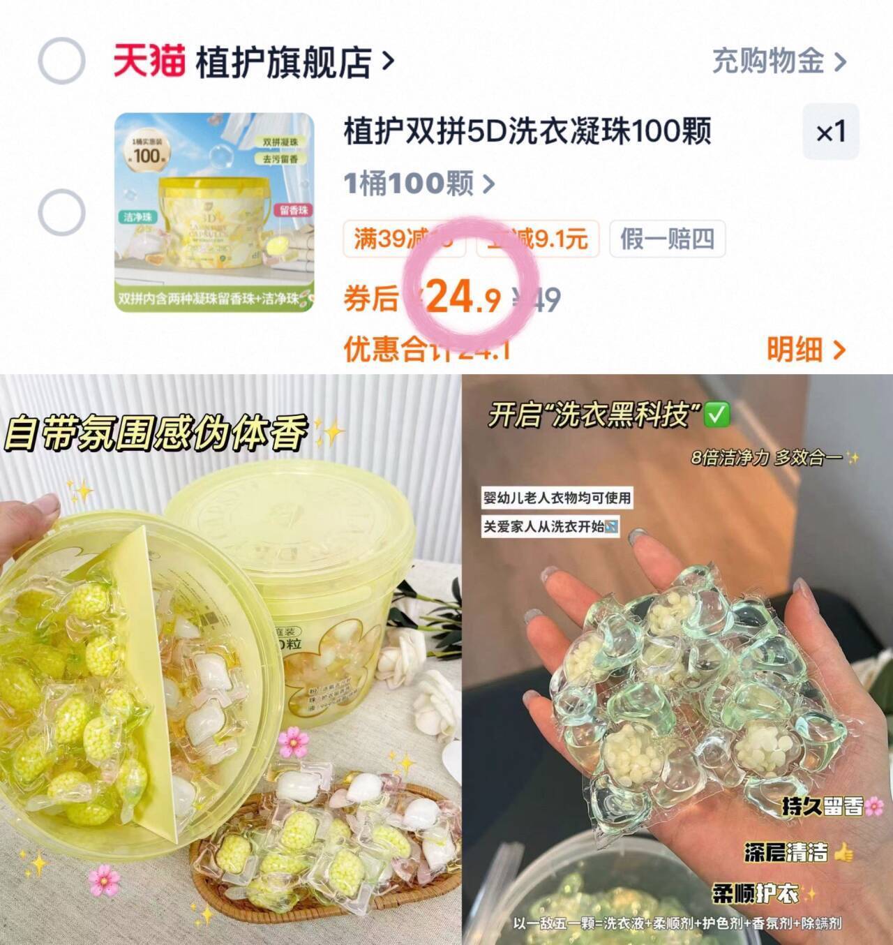 植护双拼洗衣凝珠100颗 24.9元发报员Z2026年04月26日 08:400举报 0.2/颗 植护双拼洗衣凝珠!24.9 到手100颗一大桶抑菌去渍 留香一颗搞啶!囤https://m.tb.cn/h.iGQYI4Q复制文案
