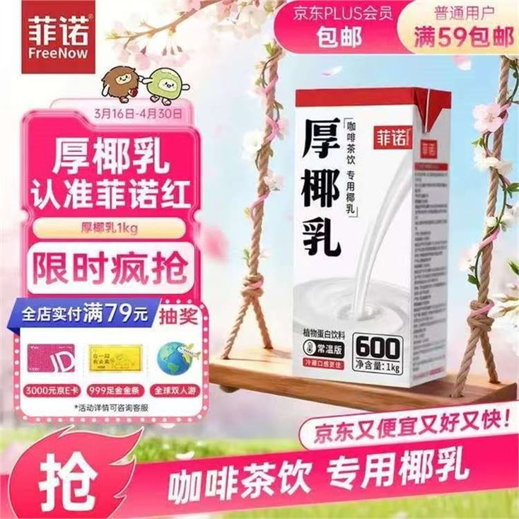 【自营】菲诺 零乳糖厚椰乳1kg