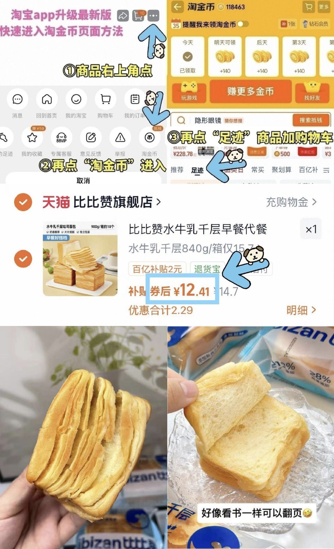 ①如图点右上角3个点选淘金币