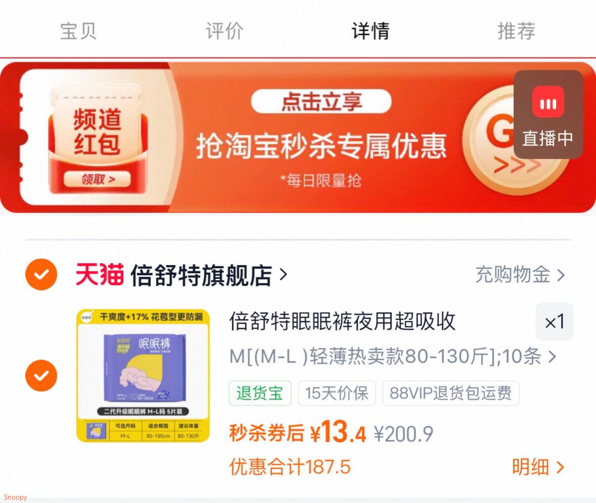 倍舒特安睡裤10条 1.3元/条,妙杀弹1.5元,13.4元发报员Z2026年04月26日 16:410举报 1.3/条 倍舒特-安睡裤10条 下拉妙.杀弹1.5 忦才对13.4元一点也不闷热 线下超市超级贵https://m.tb.cn/h.iGHqJPU复制文案