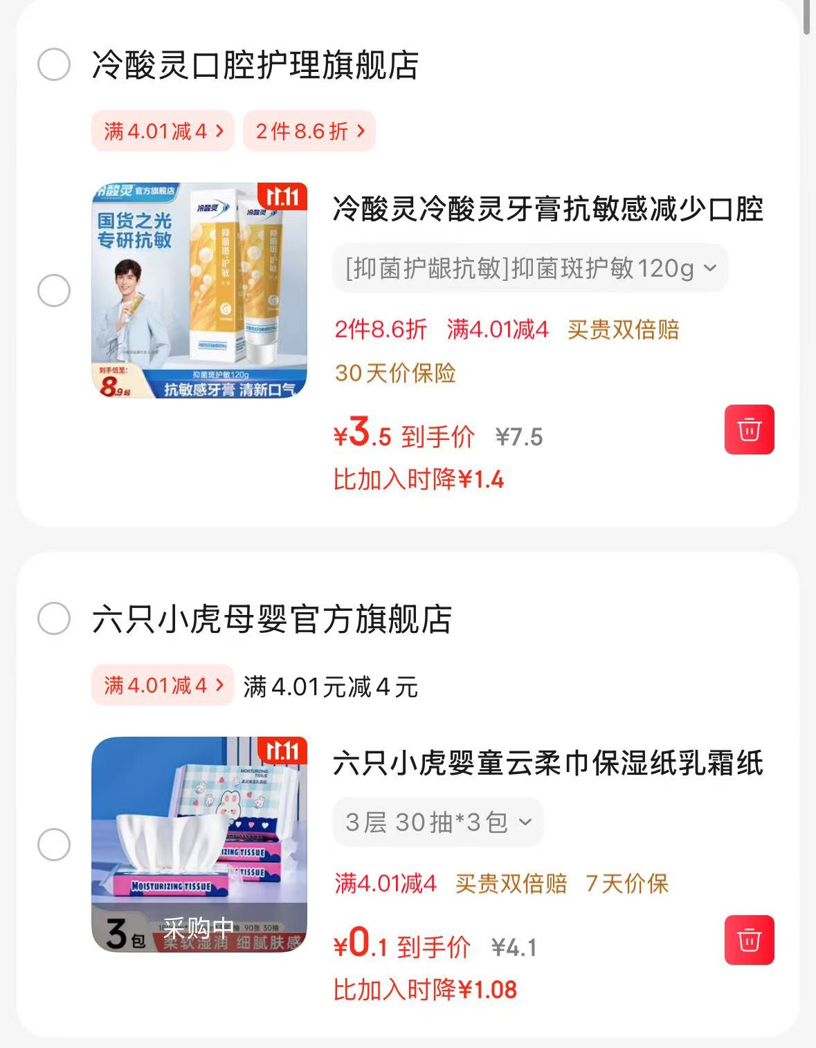 0.1元 六只小虎乳霜纸云柔巾30抽*3包