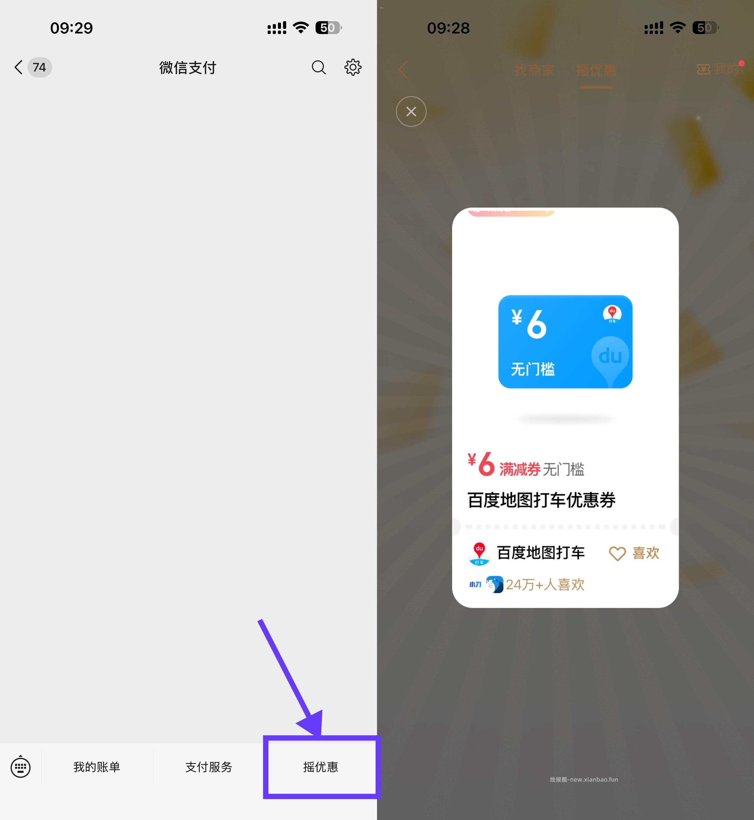 微信摇一摇抽百度打车立减券 小刀 2025年11月25日 15:17 0 举报 【微信摇一摇抽百度打车立减券】微信进入#公众号:微信支付 ->右下角“摇优惠”->每天1次机会,抽百度打车6亓无门槛券 复制文案 原文地址:https://www.x6d.com/i-wz-30366.html版权声明:本站作为免费线报整合平台,文章快照抓取源于网络。临时存储未经验证,本站不参与任何平台活动,请自行甄别,谨防受骗!