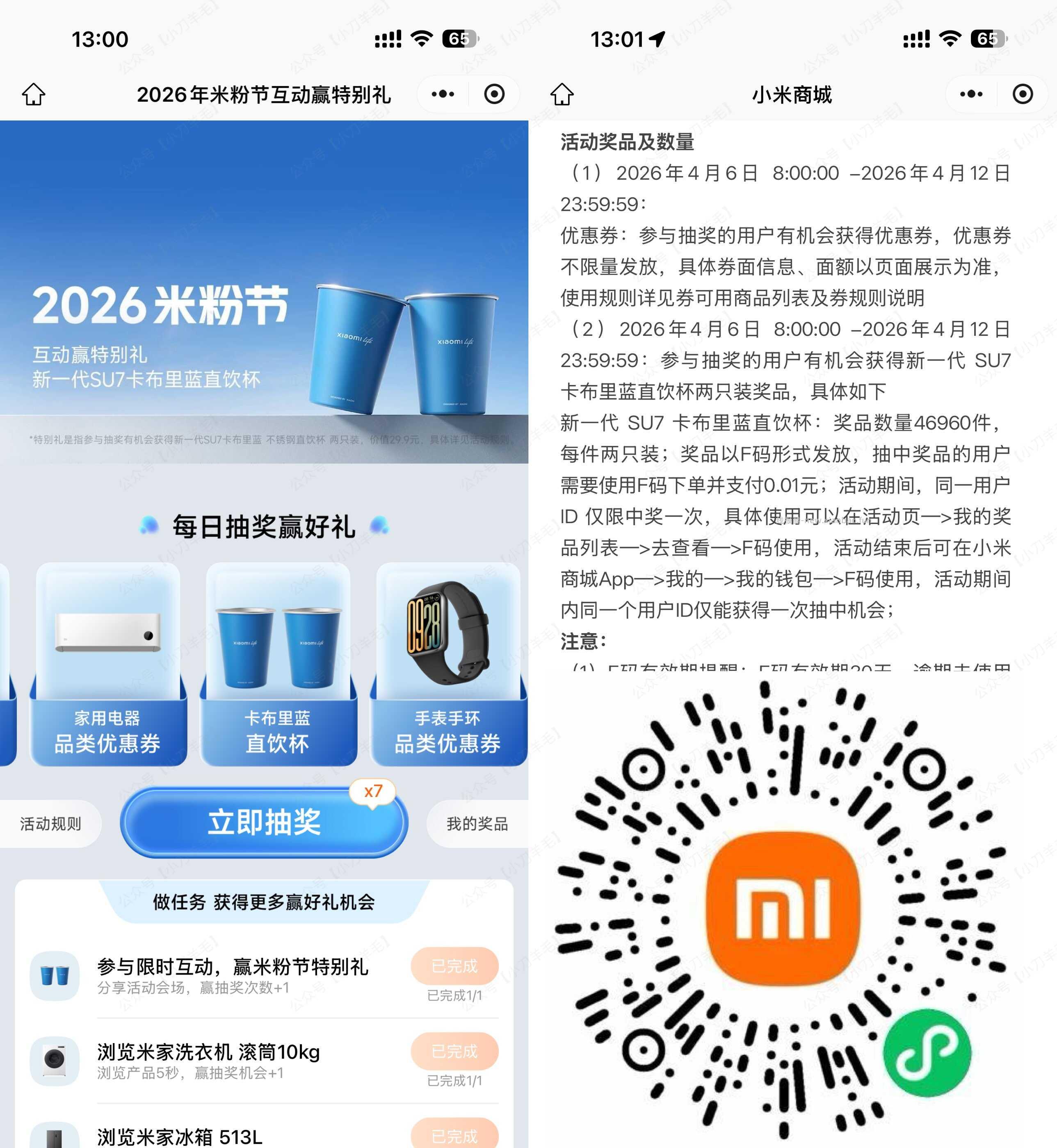 微信打开活动->简单浏览得多次机会,抽5万份0.01亓不锈钢直饮杯2个